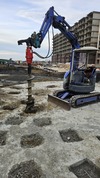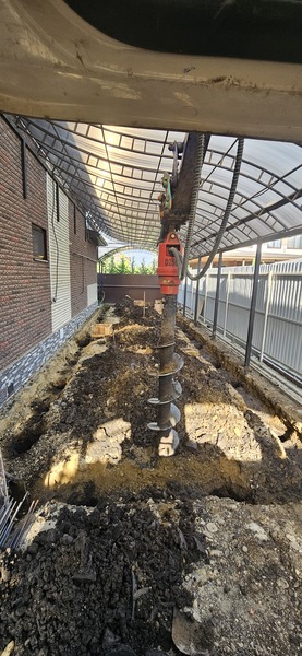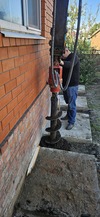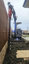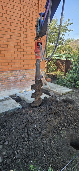 Ямобур на базе мини-экскаватора 2тонны на гусеничном резиновом ходу, ширина 135см заедет и проедет почти везде. Диаметры шнеков 200-300мм, глубина бурения до 2,5м. Очень удобно бурить под навесом, в помещениях, в тесных условиях.Также собой имеются ковши если надо прокопать ленту и пробурить в ней.