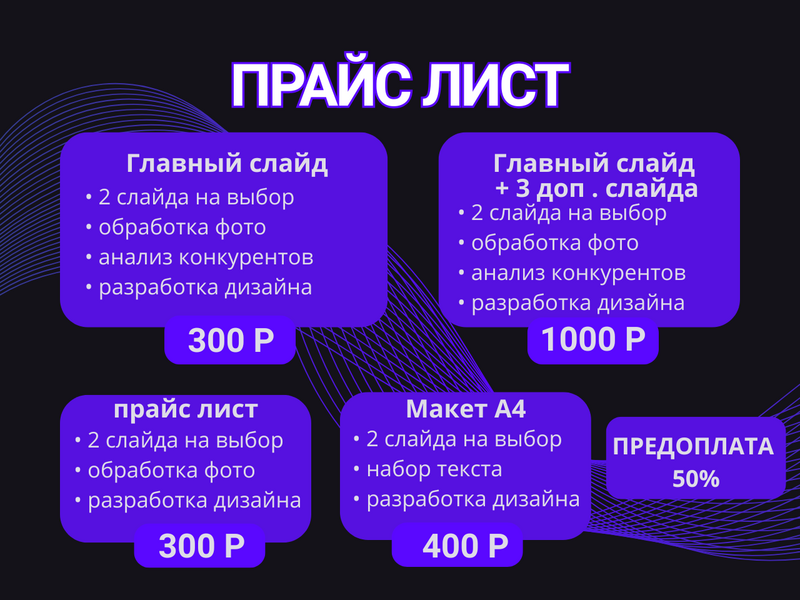 Предоставляю услуги графического дизайна для селлеров маркетплейсов (Озон, Вайлдберриз, Яндексмаркет и др. ), для пользователей популярных досок объявлений (Авито, Юла, КупиПродай и др. ), продавцов товаров и услуг в соцсетях (Вконтакте, одноклассники, Меера, Росграм, Нельзяграм и др. ) и не только. Я ценю каждого своего клиента. Более 60% заказчиков готовы продолжать сотрудничество со мной и возвращаются с новыми интересными заказами. При этом получают приятные индивидуальные скидки.