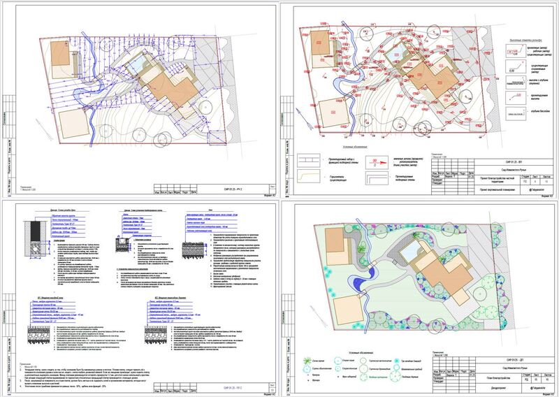 Также подготовлю полный комплект документов для выполнения ландшафтных работ (чертежи дренажной системы и ливневого водоотведения, вертикальной планировки, систем освещения и автополива, планы покрытий с ведомостями материалов, дендропроект и посадочную ведомость) и могу рекомендовать исполнителей / подрядчиков, гарантирующих качество.