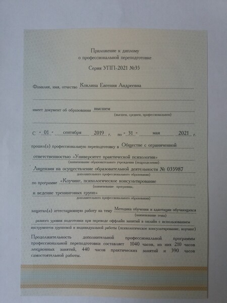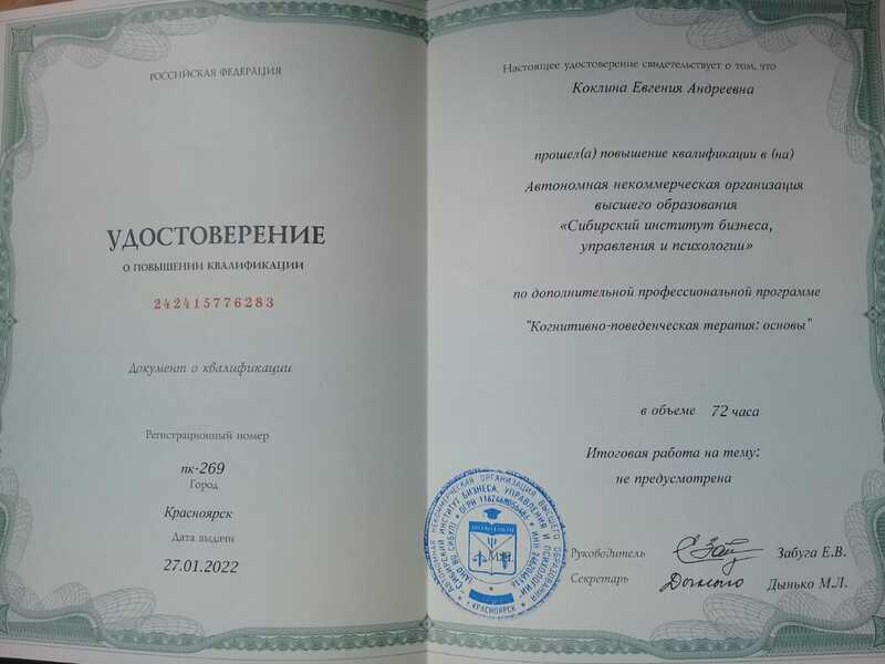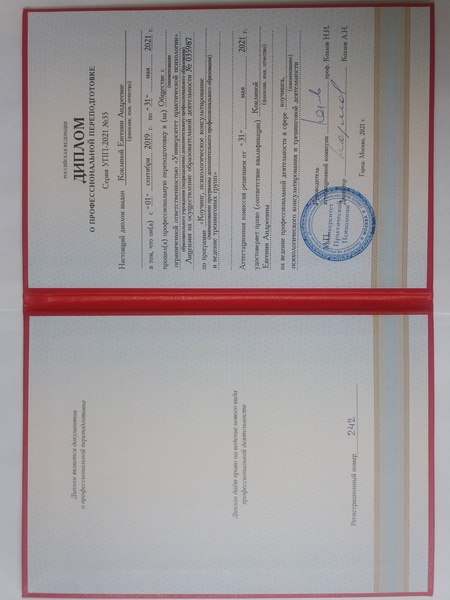 Также имею Психологическое образование (2021 год, Повышение квалификации, СИБУП, Сибирский институт бизнеса и Повышения квалификации).